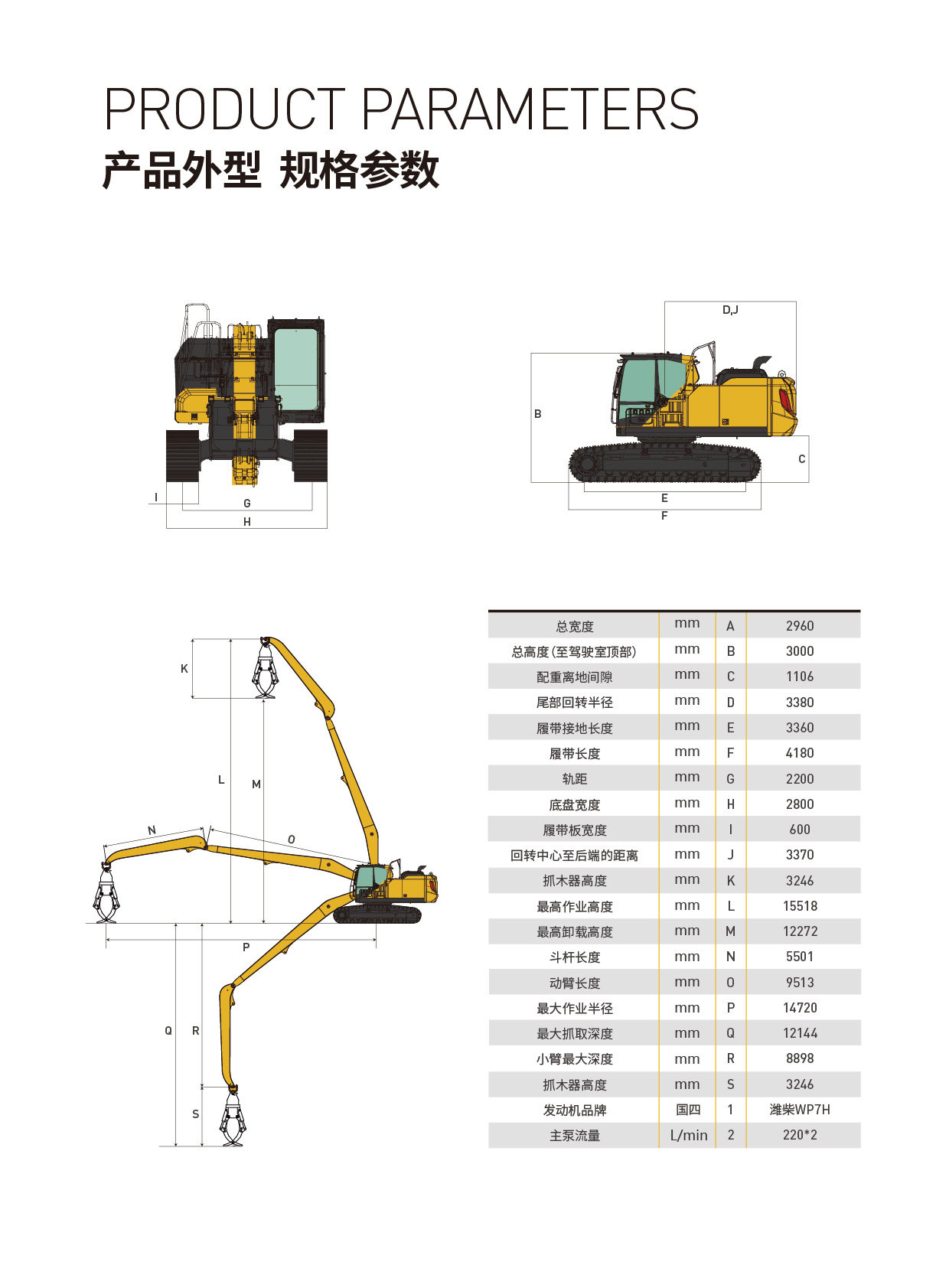 合礦HK945FC履帶式全液壓抓木機,作為行業內的佼佼者,以其卓越的性能、高效的作業能力和節能環保的設計理念,為木材抓取作業提供了強有力的支持。該機型工作重量達到32000kg,抓斗容量高達2500kg,能夠輕松應對各種復雜工況和重載作業需求。