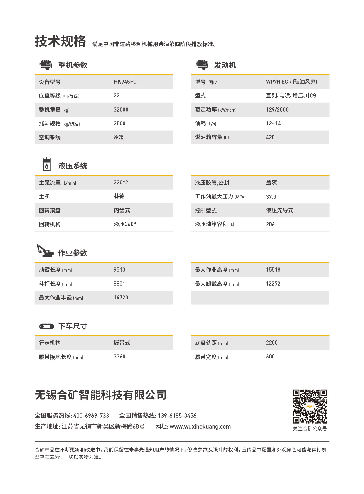 HK945FC搭載了合礦定制的WP7H EGR低轉速大扭矩發動機,這款發動機以其出色的熱效率和行業領先的性能,使得整機作業效率提升了10%,燃油效率更是提升了15%。配合大排量正流量主泵和大流量主閥,進一步優化了液壓系統,實現了更低的能耗和更高的作業效率。此外,發動機核心部件享有5年或10000小時的超長質保,彰顯了合礦對產品質量的自信。